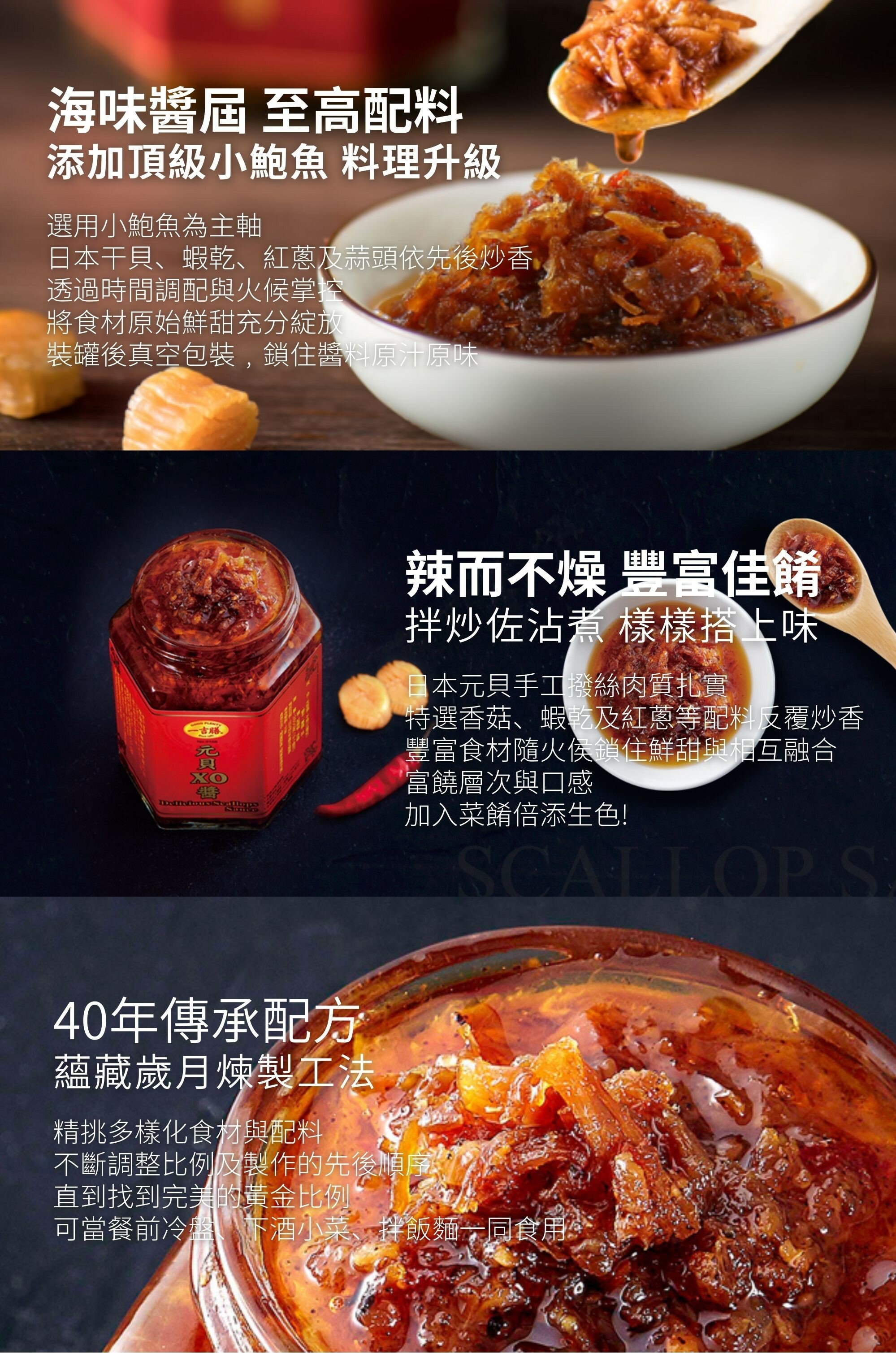 ▪ 成分:大豆油、蝦干、紅蔥、蒜頭、干貝、二砂、辣椒、鮑魚、