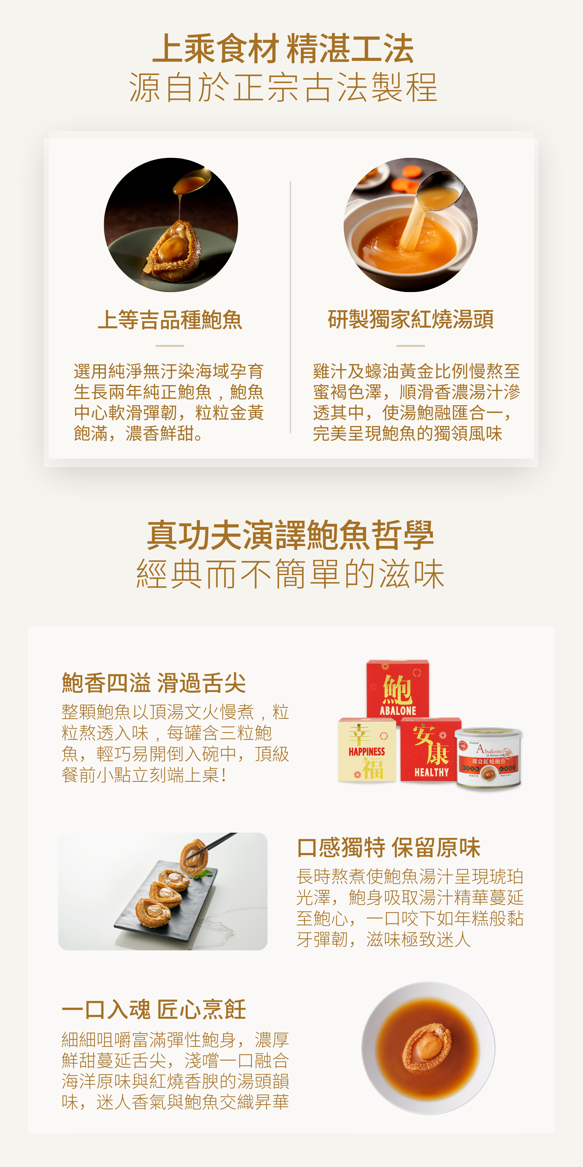 ♦ 品名:《真情食味》即食紅燒鮑魚禮盒180g*3罐/組