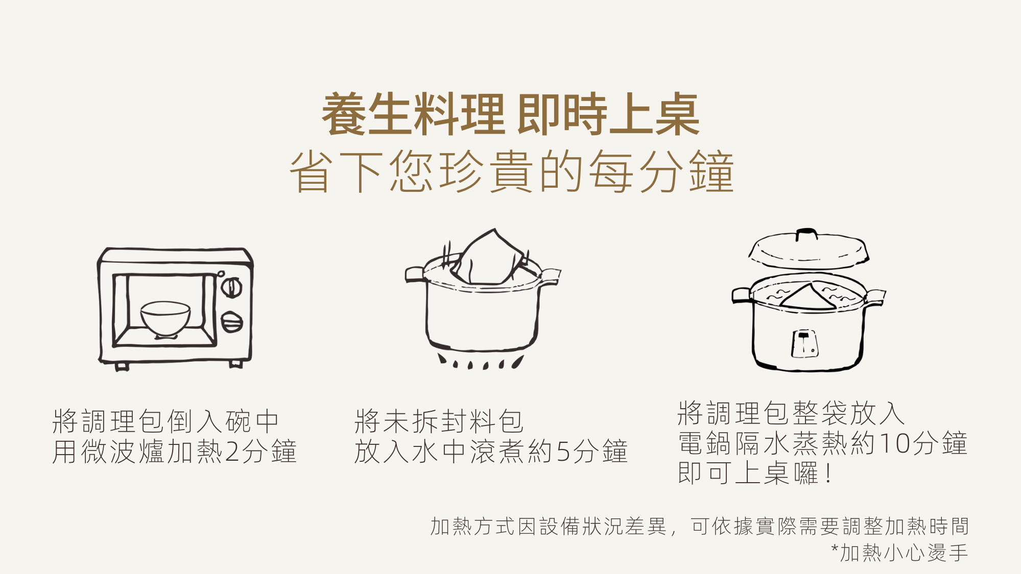▎常溫存放,加熱後即可食用(無須冷藏)