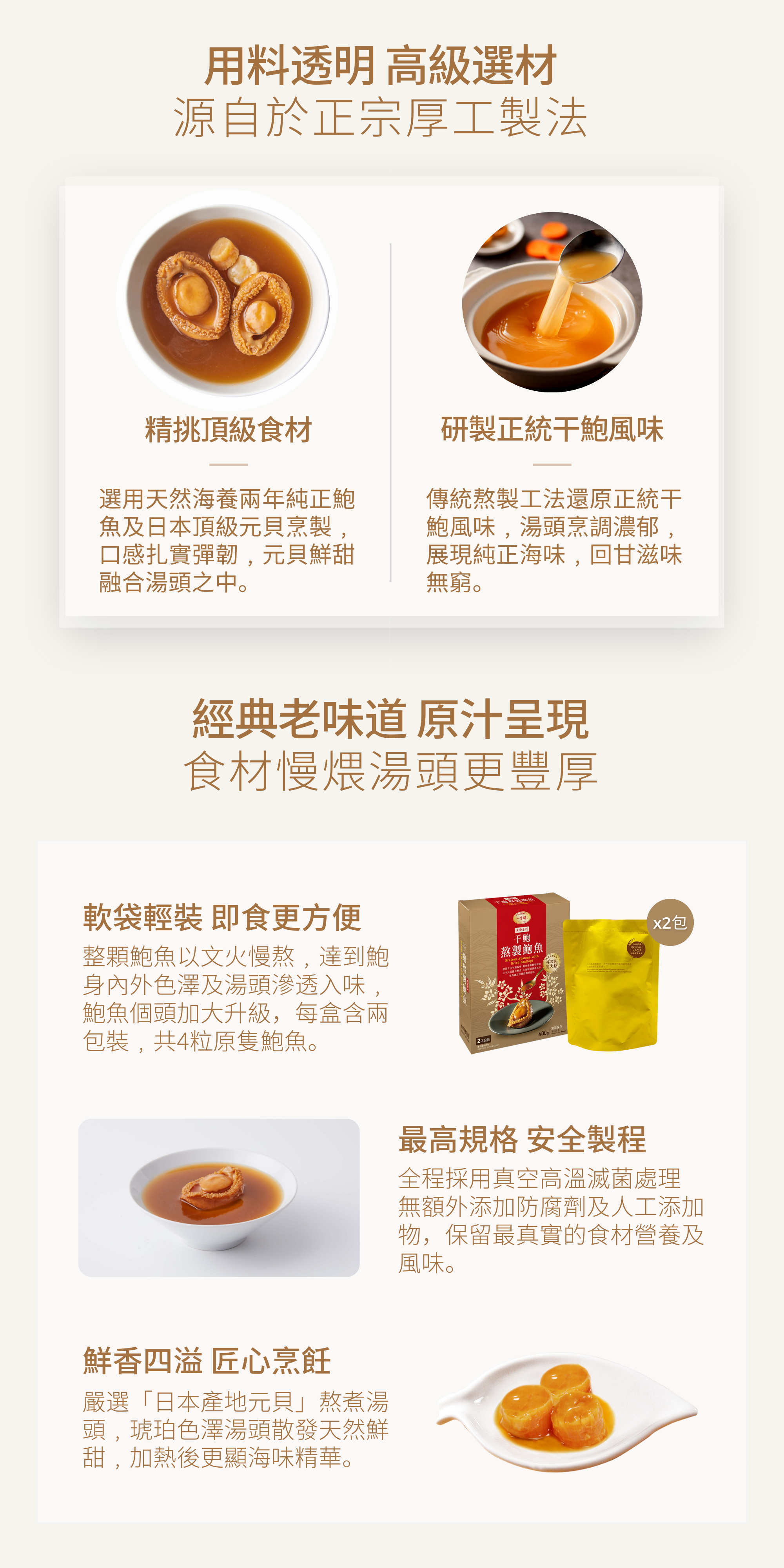▎熱銷品《干鮑熬製鮑魚》進階版:鮑魚加大1倍!
